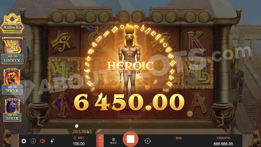 The maximum potential win in Ark of Ra slot is 1000 times your initial stake.