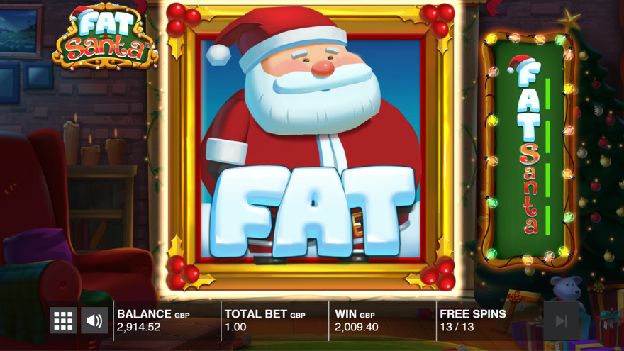 What features are available in the Fat Santa slot game?