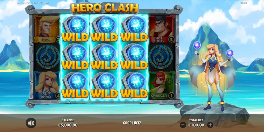 Hero Clash is a video slot developed by Stakelogic and Hurricane Games, transporting players to a superhero universe. This game features a 5-reel layout where players can engage with various superhero characters. This engaging and humorous slot provides opportunities to win up to 5000 times the bet, highlighted by a high Return To Player (RTP) rate of 98.10%. Explore the capabilities of these heroes and the potential outcomes during gameplay.