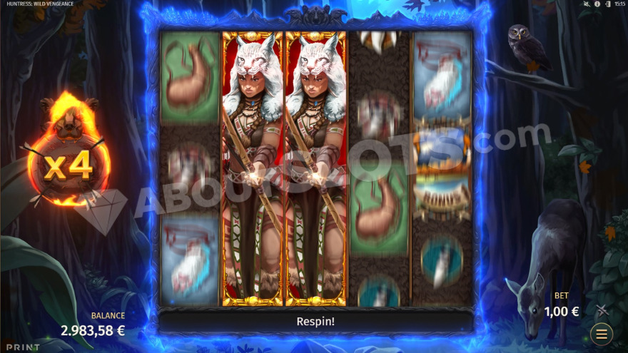 The maximum possible win in Huntress Wild Vengeance slot reaches 20,000 times your bet.