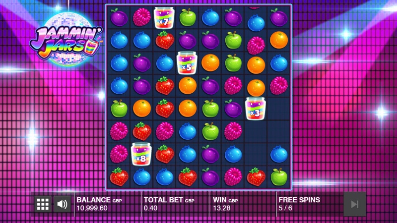 Jammin' Jars is packed with exciting features to enhance gameplay. The Jam Jar symbol itself acts as both a Wild and a Scatter. As a Wild, it substitutes for other symbols to help create winning clusters. Importantly, each Jam Jar has a multiplier that increases every time it contributes to a win. Landing three or more Jam Jar symbols triggers the Free Spins feature, awarding 6 free spins where these multipliers can grow significantly. Additionally, during the base game, colossal 3x3 fruit symbols can randomly appear, increasing the potential for large cluster wins. The cascading reels mechanic also adds to the excitement, allowing for consecutive wins within a single spin.