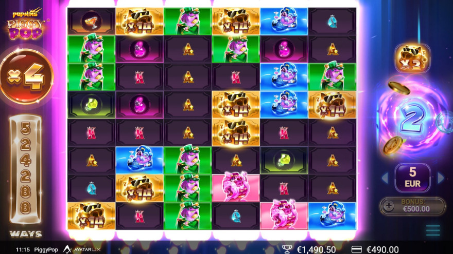 The maximum win potential in PiggyPop can reach up to 10,690 times your bet.