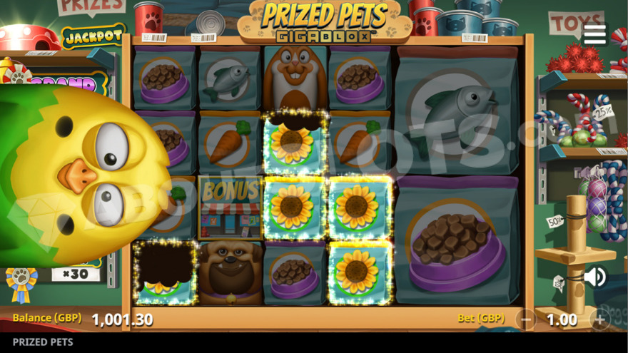 Prized Pets Gigablox is a recent release from Northern Lights Gaming, inviting players into a vibrant pet store filled with charming animals. Drawing inspiration from the animated film genre about pets’ secret lives, this game brings these creatures to life when their owners are away. While numerous animal-themed slots exist, Dog House Megaways has gained player favor for its engaging elements. Northern Lights Gaming aims for a similar festive atmosphere with bright visuals in this title. Let’s explore this slot and see what awaits during gameplay.