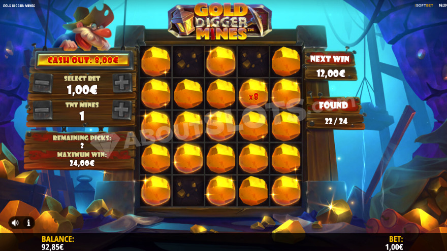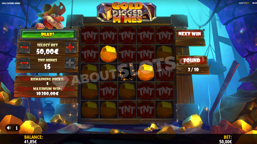 Upon starting the game, players click on any of the 25 concealed positions. Revealing a gold nugget awards the amount displayed on it to your current winnings. You then have the choice to select another position or collect the accumulated prize. With each gold nugget found, the prize escalates. A dedicated counter tracks the clicks remaining to achieve the maximum win. Selecting a TNT mine results in losing all accumulated winnings, and the round concludes. For and to start playing, visit the today.