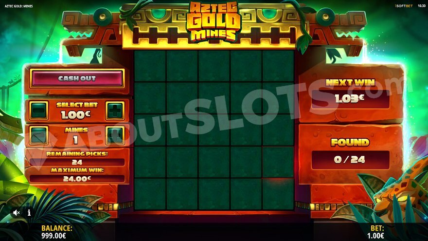 Aztec Gold Mines is a modern online slot game that invites players on a treasure hunt. The game is set in the era of the Aztec Empire, approximately 600-800 years ago, in what is now central Mexico. Players are transported into mysterious jungles, encountering wildlife and the promise of hidden riches. The objective is to discover treasures while avoiding the dangerous mines guarded by an Aztec warrior.